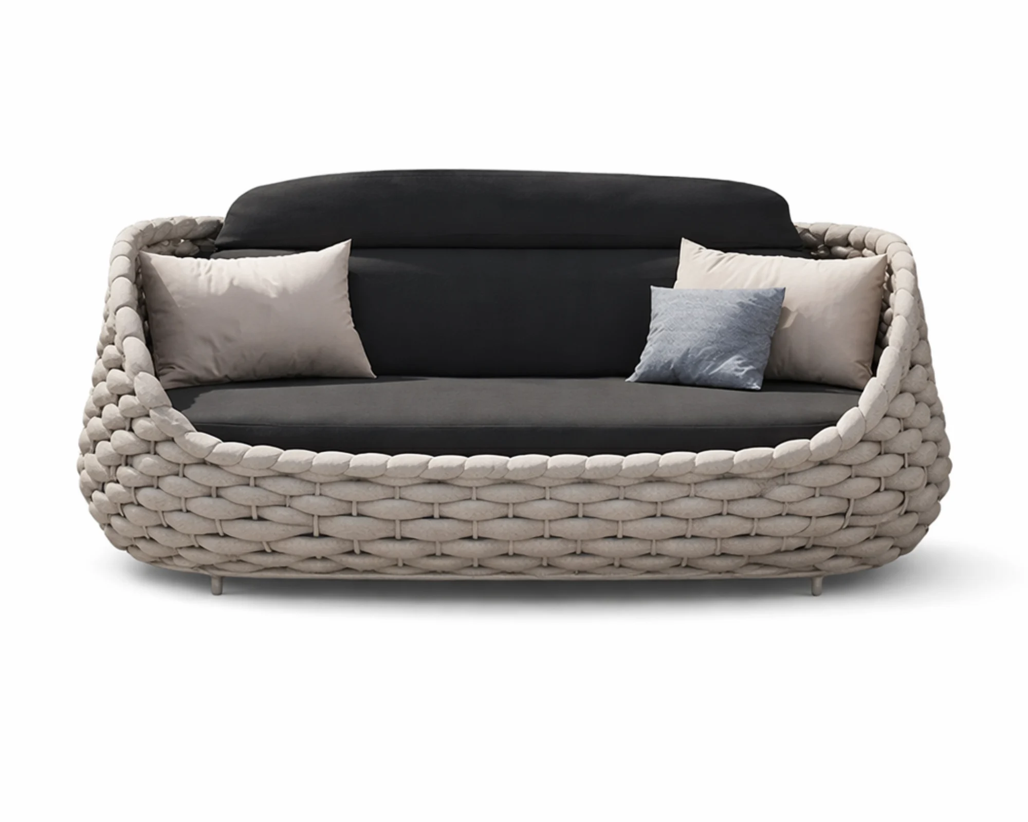 ספה במראה קלוע מציגה עיצוב ייחודי עם נוכחות עיצובית ברורה, המשלב נוחות מרבית עם מראה יוצא דופן. המרקם הקלוע יוצר תחושה חמימה ומזמינה, ומעניק לחלל החוץ עומק ואופי מוקפד.