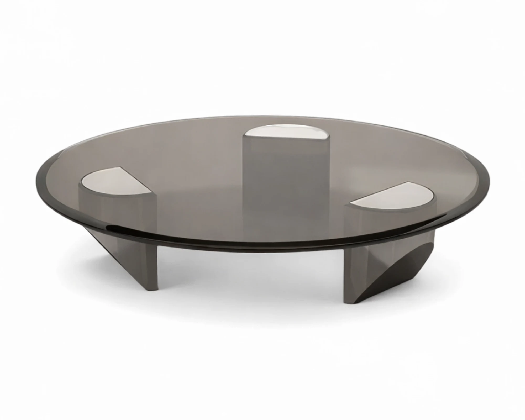 שולחן זכוכית עגול יוקרתי שמכניס לסלון נוכחות אלגנטית וסטייל ייחודי. העיצוב המרשים משלב קווים נקיים עם רגליים מיוחדות ומעוצבות בצבע שחור, היוצרות מראה עוצמתי, מודרני ואקסקלוסיבי.