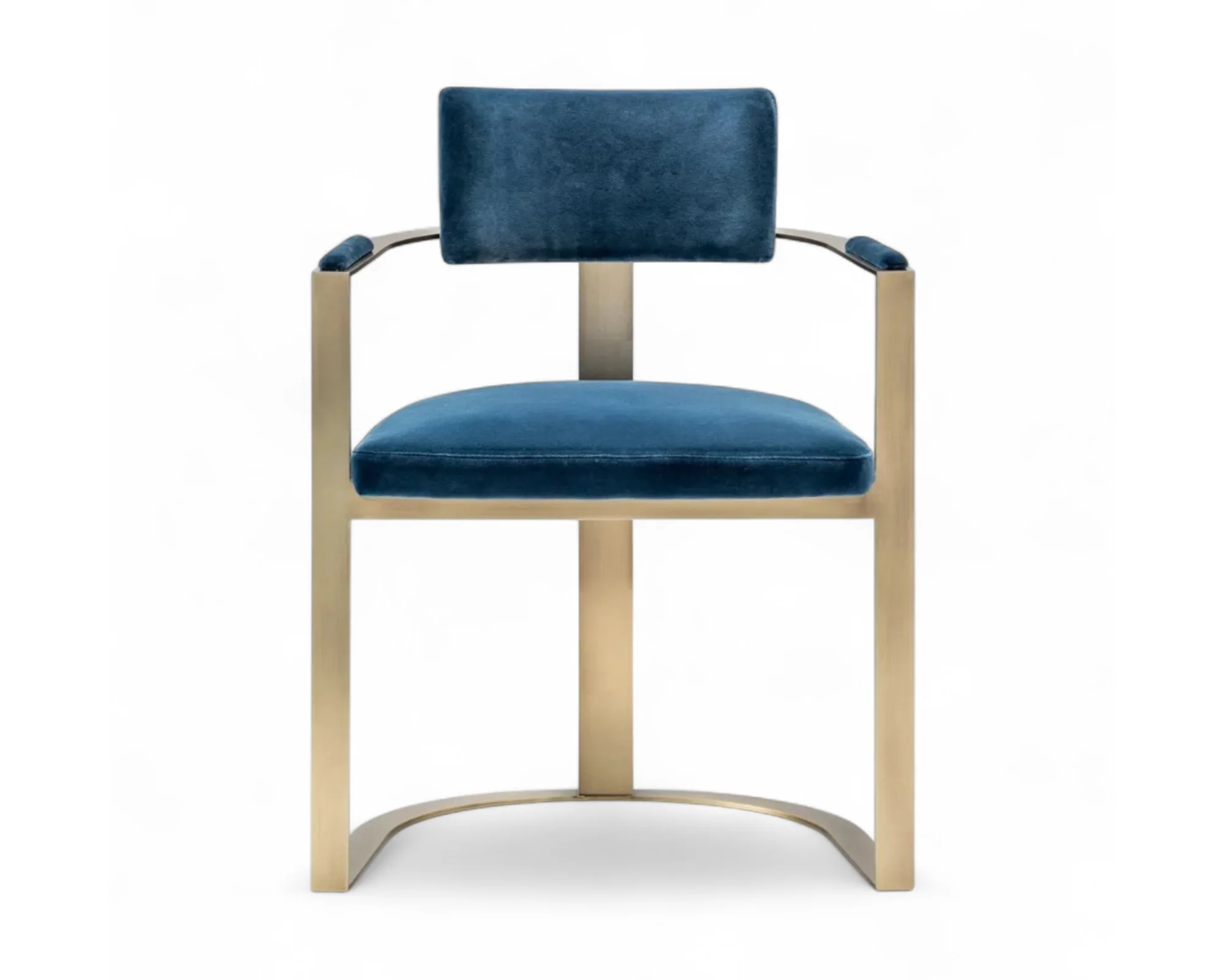 המושב עשוי מבד או עור איכותי, המעניק לו מראה יוקרתי ומזמין. המסגרת הפנימית עשויה מפלטה מכופפת עם ספוג בצפיפות גבוה, מה שמעניק לכיסא מראה יציב וחזק. הרגליים עשויות מסגרת ברזל בעובי 6 מ"מ עם צבע ברונזה צהוב, מה שמעניק לכיסא מראה יוקרתי ומלכותי.