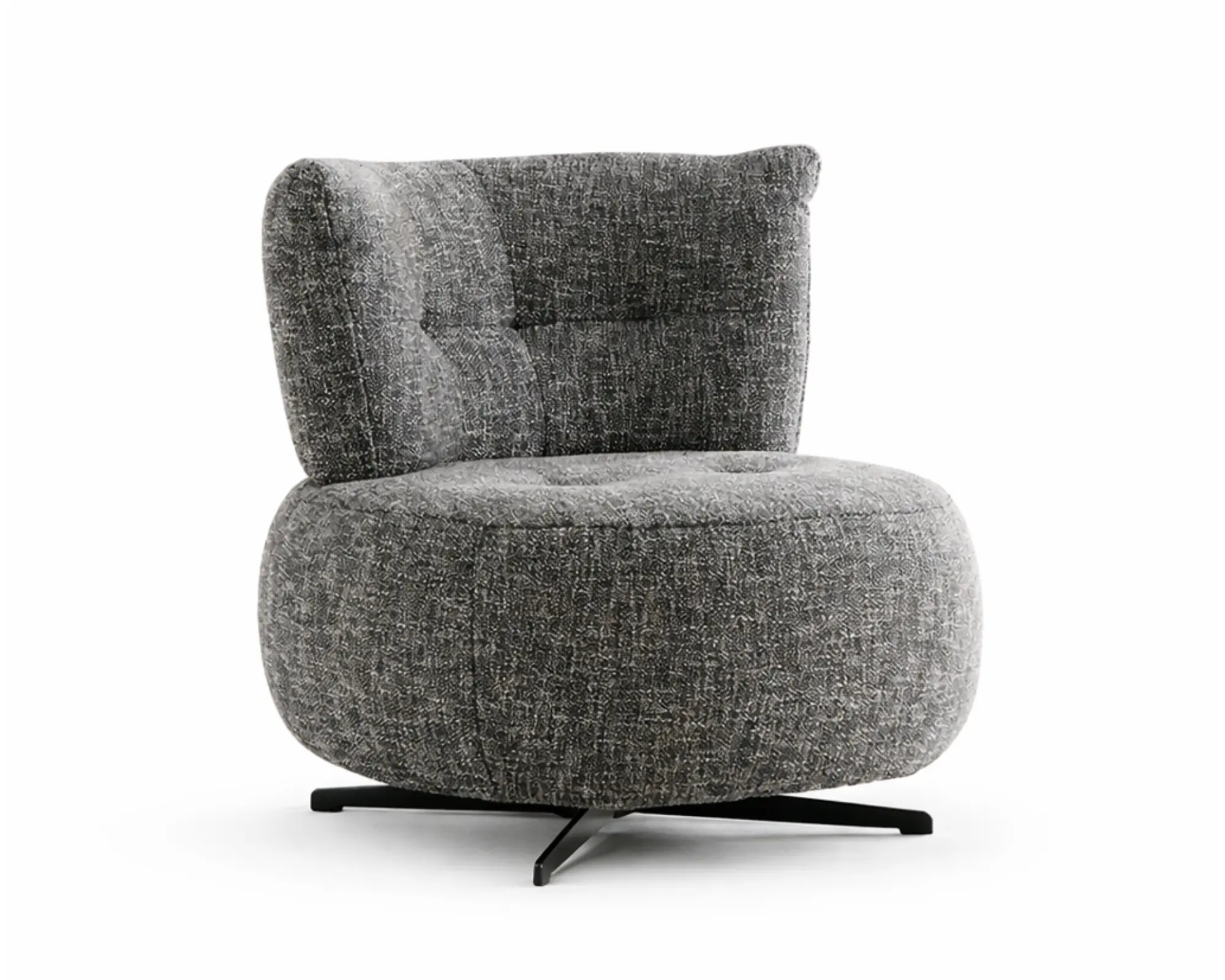 הבסיס המתכתי בגימור שחור מעניק יציבות מלאה לצד מראה קליל ומודרני, ומשלים את השילוב בין רכות הבד למבנה החזק. השילוב בין טקסטורה עשירה לקווים עגולים יוצר כורסא מעוצבת לסלון המשתלבת בהרמוניה בסגנון עכשווי, מודרני או אקלקטי.