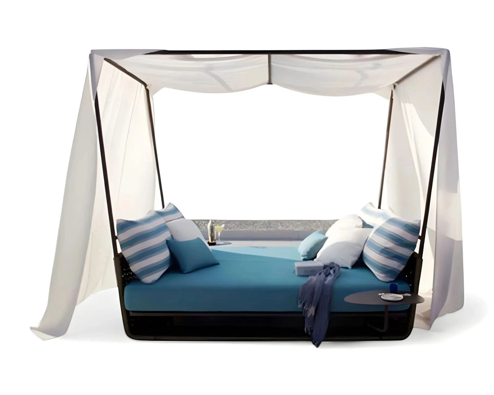 בין אם היא ממוקמת על גג עם נוף פתוח, בגינה פרטית או לצד הבריכה, המיטה יוצרת אווירה ייחודית של פינוק ועידון. היא משדרגת את חלל החוץ ומעניקה לו תחושת יוקרה רגועה, הנשענת על עיצוב מדויק וחוויית שימוש נעימה.