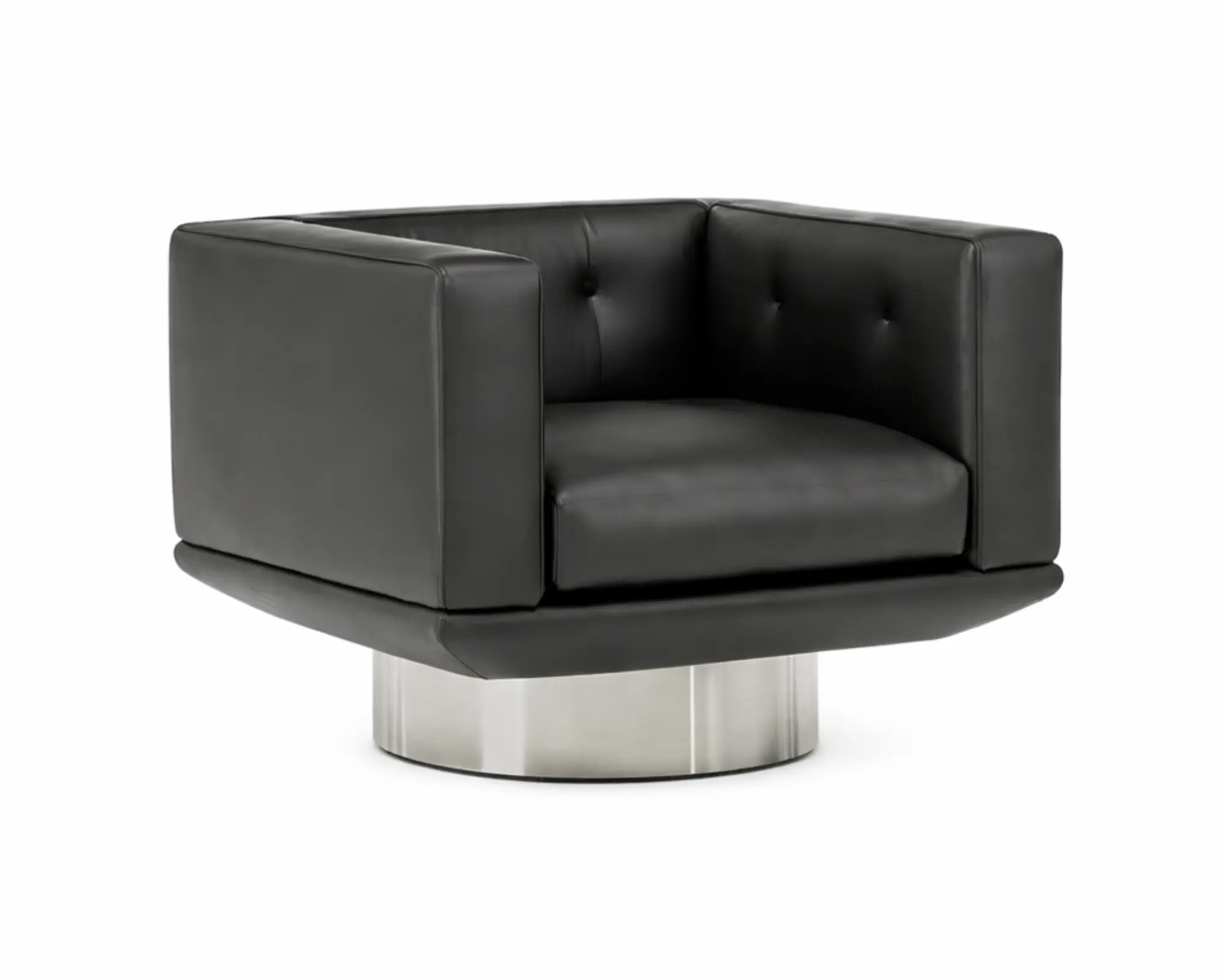 כורסא מסתובבת מעוצבת בסגנון מודרני יוקרתי, המשלבת קווים גיאומטריים מדויקים עם מראה אלגנטי ועל-זמני. המבנה הקובייתי הרחב והנמוך יוצר תחושת יציבות ונוכחות, בעוד שהפרופורציות המאוזנות מעניקות לה מראה נקי ומוקפד המתאים לחללי סלון מעוצבים, משרדים יוקרתיים ופינות ישיבה מודרניות.