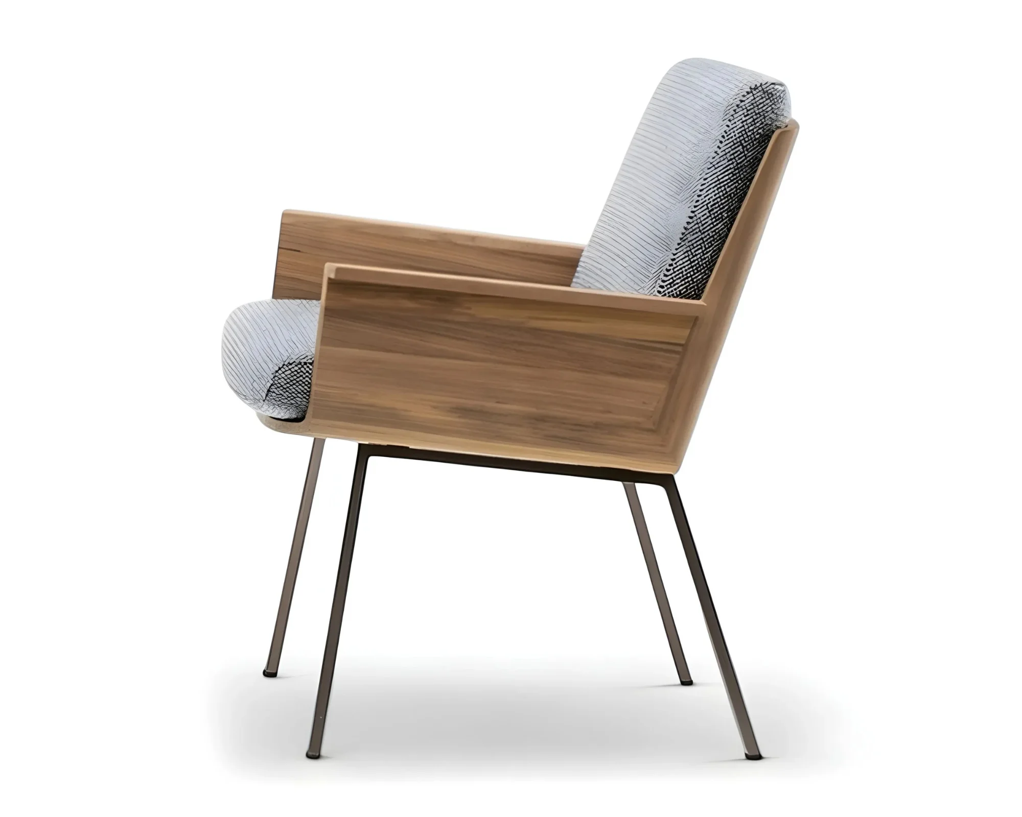 הקווים המודרניים מתכתבים עם שפה עיצובית מתוחכמת והופכים את הכיסא לפריט מרכזי בכל חלל חיצוני. שילוב העץ מעניק עומק וחמימות, בעוד העיצוב המדויק שומר על מראה נקי ואלגנטי.