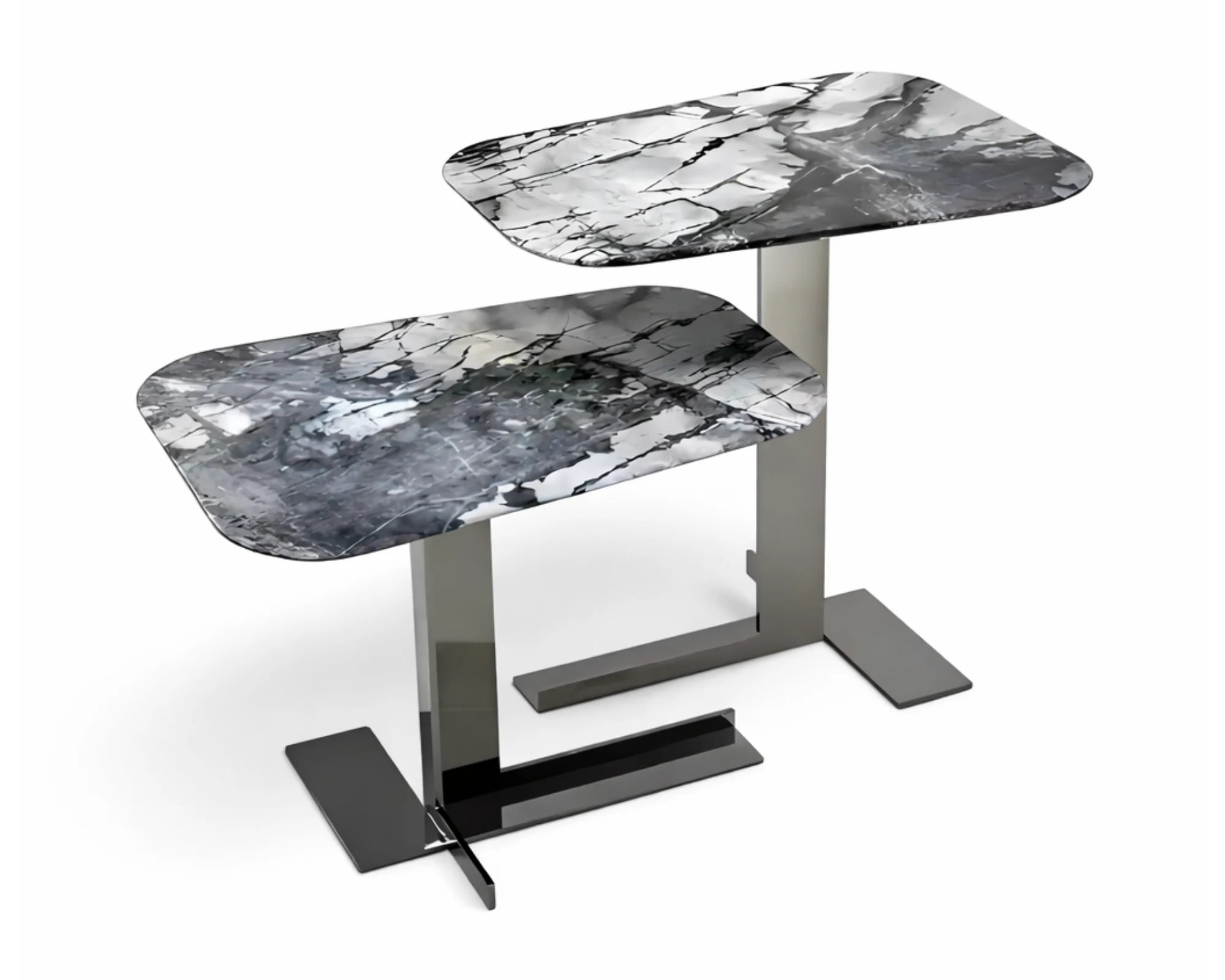 סט שולחנות צד עם משטח שיש מלאכותי ובסיס פלדת אל חלד