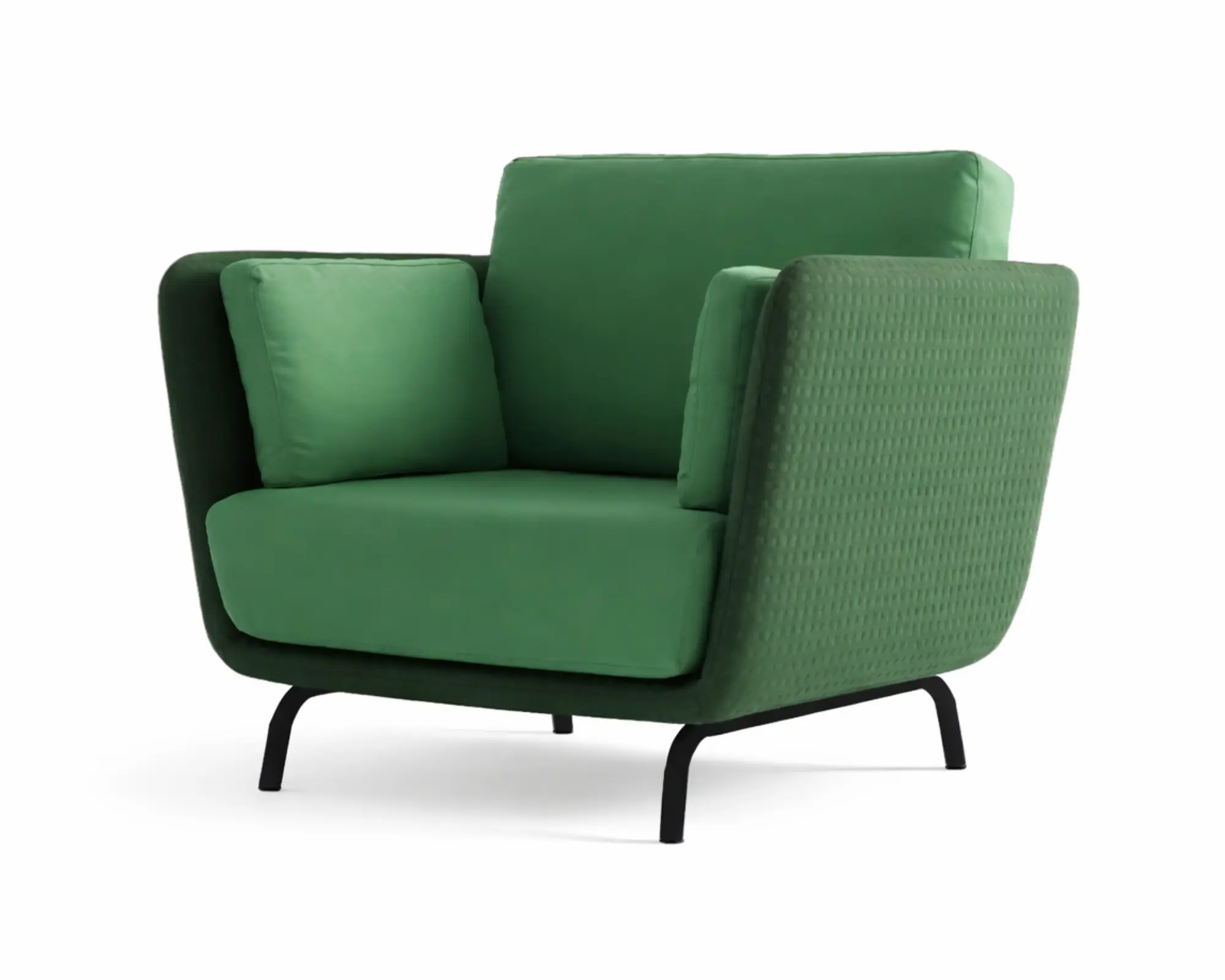 המילוי בספוג בצפיפות גבוהה מעניק איזון מושלם בין רכות לתמיכה, בעוד שגם אזורי הידיות מרופדים בספוג איכותי ליצירת תחושת עיטוף ונוחות מקסימלית. רגלי ברזל מלא בצביעה שחורה בתנור משלימות את המראה המודרני ומוסיפות יציבות ונוכחות אלגנטית.