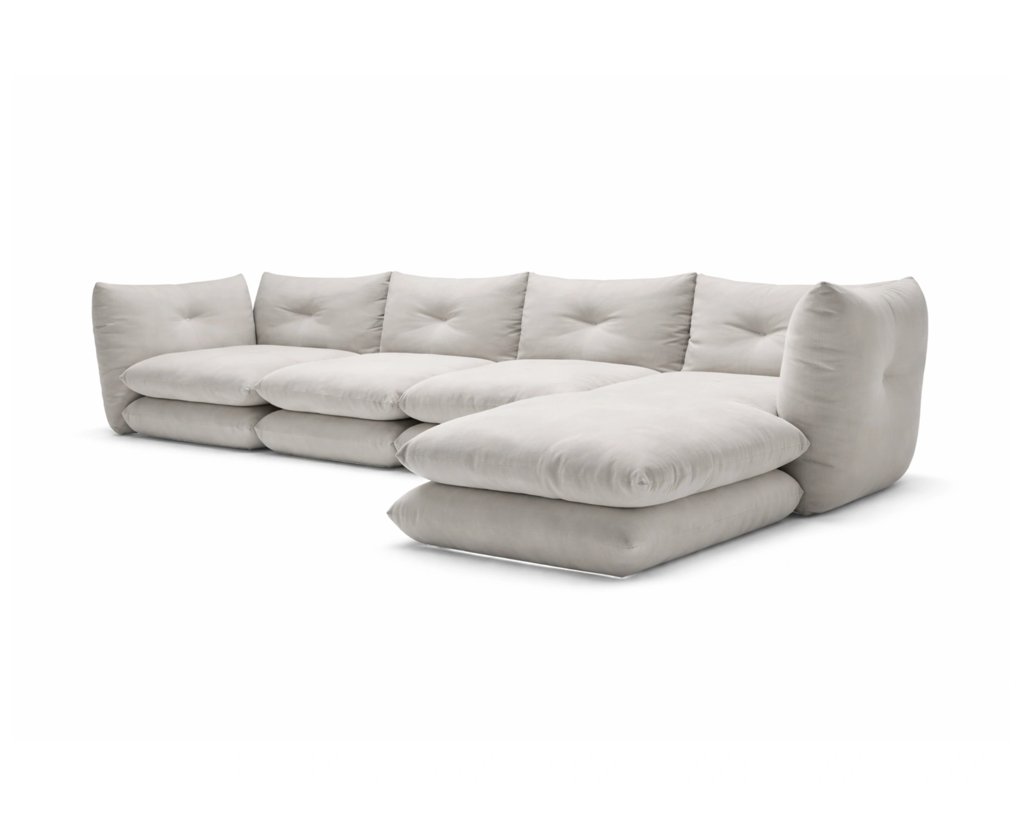 הצורה הפינתית הרחבה והעמוקה תוכננה במיוחד לישיבה נינוחה לאורך זמן, עם מושבים מרופדים בספוג איכותי בצפיפות גבוהה וכריות גב המשלבות נוצות וסיבים, ליצירת תחושת רכות מלטפת ומלאה. המבנה מדגיש זרימה טבעית בחלל ומאפשר פינת ישיבה מרווחת ונעימה.