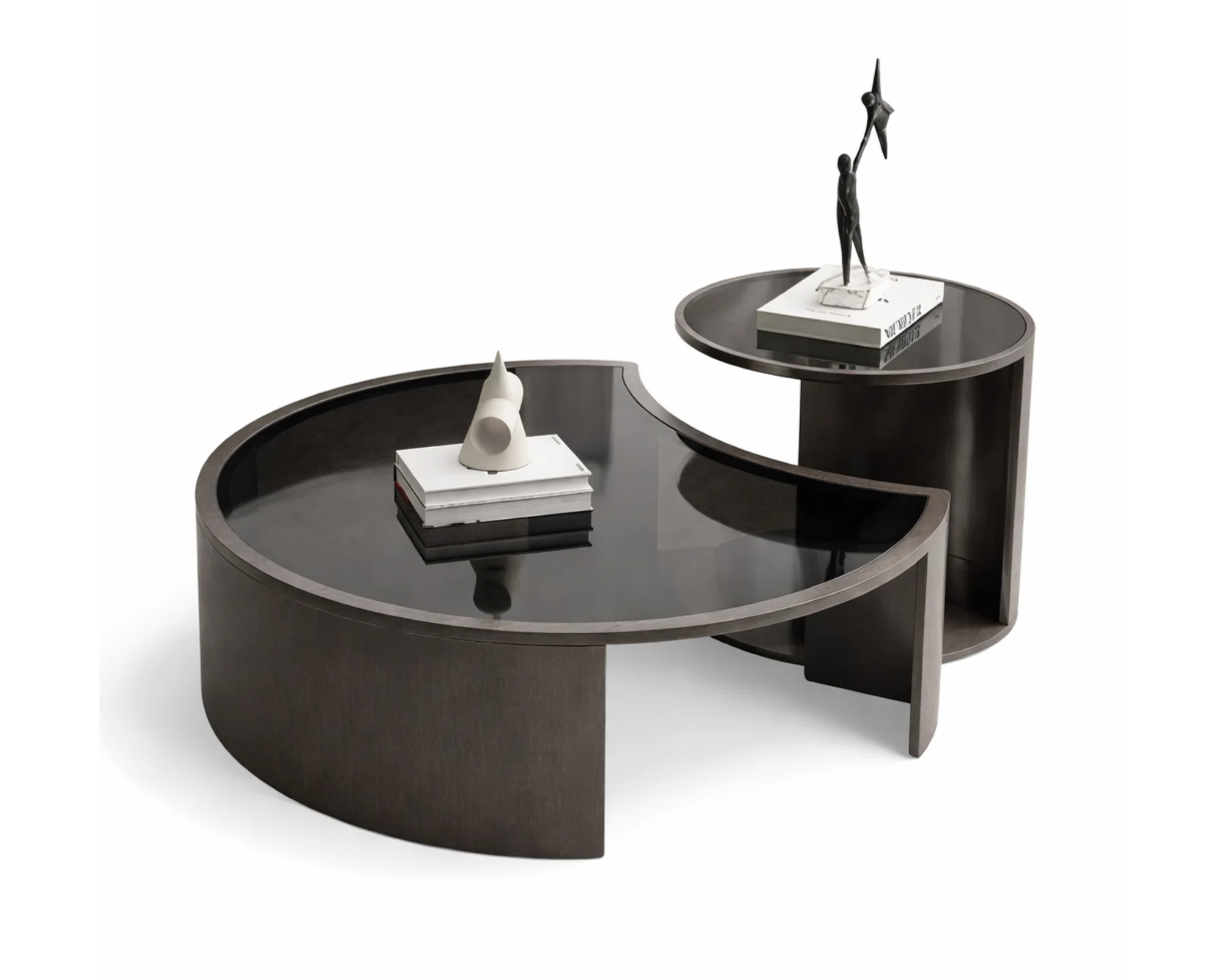 זוג שולחנות סלון יוקרתי המעניק לחלל האירוח מראה מרשים, אלגנטי ומוקפד. השולחנות מעוצבים בקווים נקיים המשלבים בין אלמנטים קלאסיים למודרניים, ויוצרים איזון מושלם בין יוקרה, פונקציונליות וסטייל על־זמני.