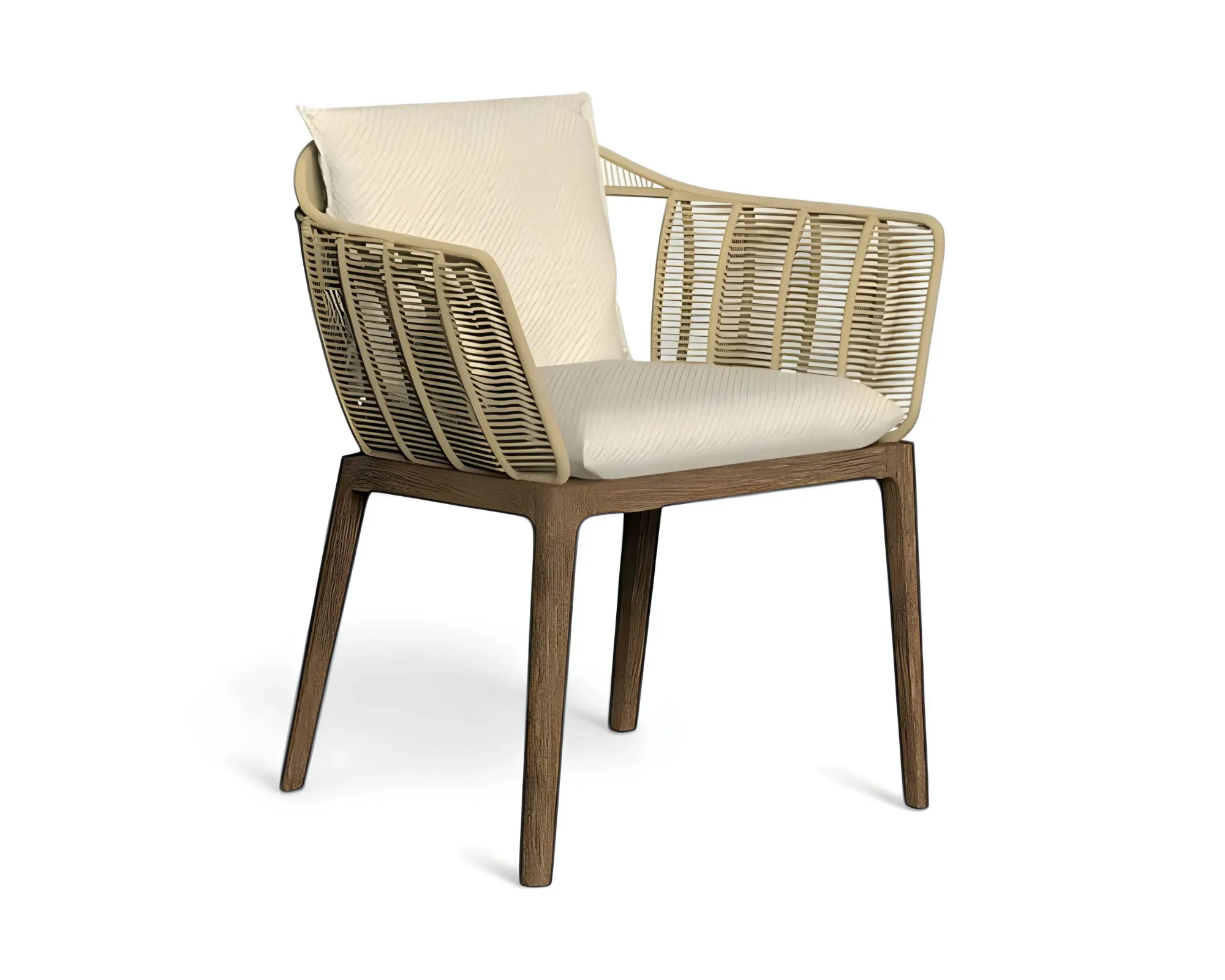 הכיסא משתלב באופן טבעי בפינת אוכל חיצונית, במרפסת או בחלל אירוח, ומוסיף טאץ’ עיצובי ייחודי שמעשיר את המרחב. זהו פריט שמחבר בין נוחות לאסתטיקה ומעניק לחלל החיצוני מראה יוקרתי ומזמין.
