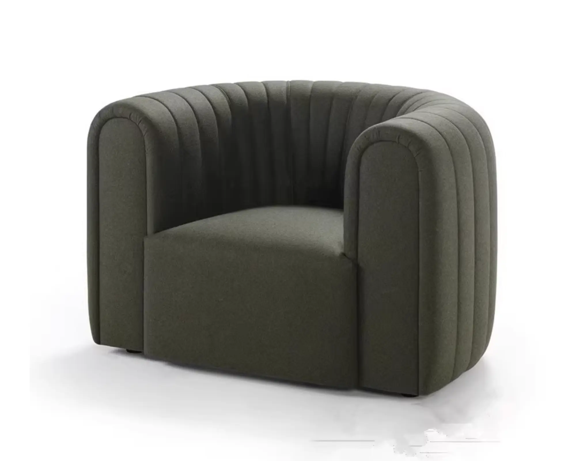 כורסא מעוצבת לסלון בקווים מעוגלים ומרשימים, המשלבת גב היקפי עם תפירות אנכיות מודגשות ליצירת מראה יוקרתי ועוטף. העיצוב הרך והפיסולי מעניק לחלל תחושת עומק ואלגנטיות, והופך את הכורסא לפריט מרכזי שמשדר סטייל מודרני לצד נוחות מפנקת במיוחד.