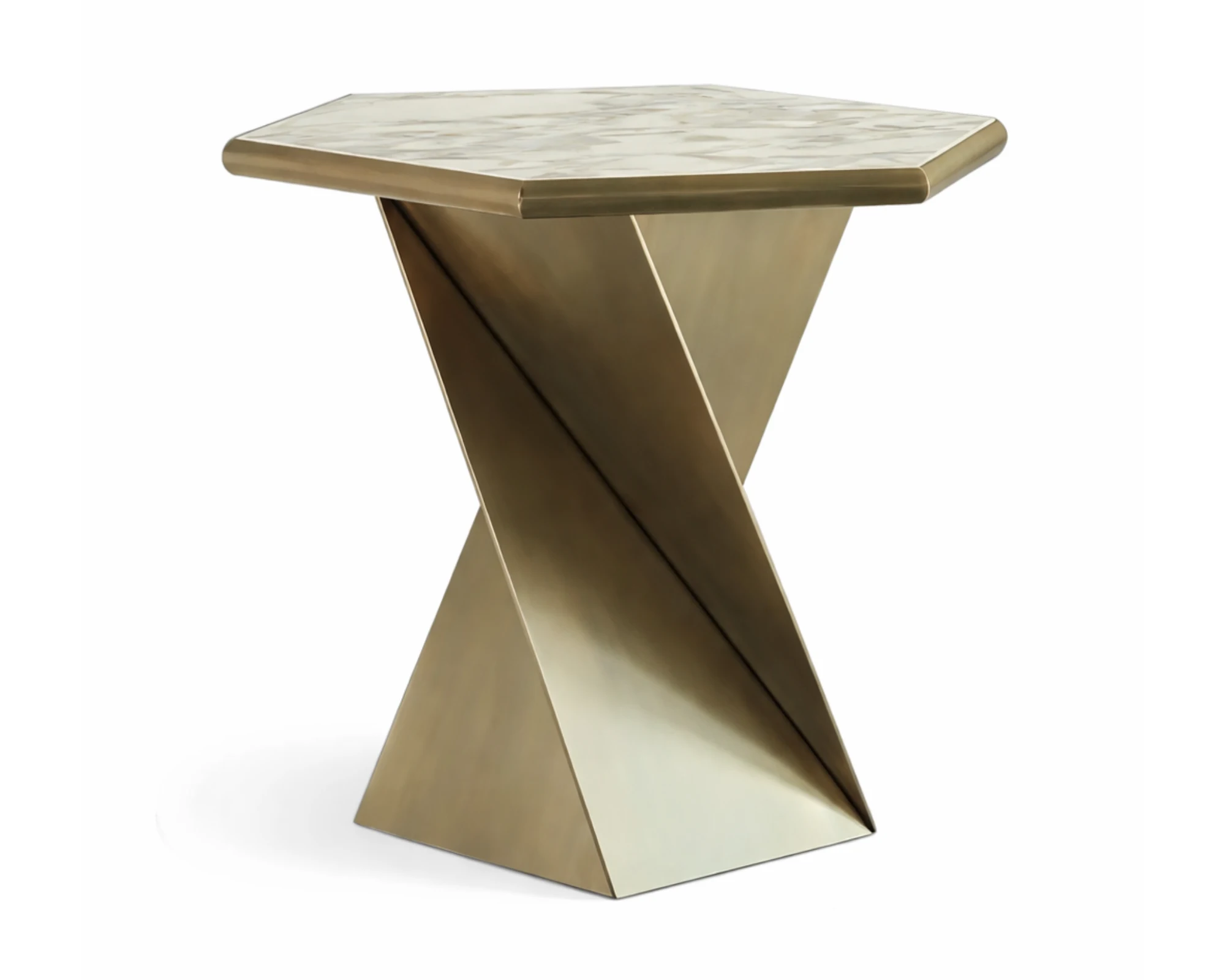 שולחן צד אבן טבעית בעיצוב פיסולי מציג קווים גאומטריים מדויקים ומראה מודרני מרשים, כזה שמוסיף עומק ואמירה עיצובית ברורה לכל חלל. זהו פריט שמאזן בין אסתטיקה עכשווית לחומריות איכותית, ויוצר נוכחות אלגנטית שאינה מתאמצת.