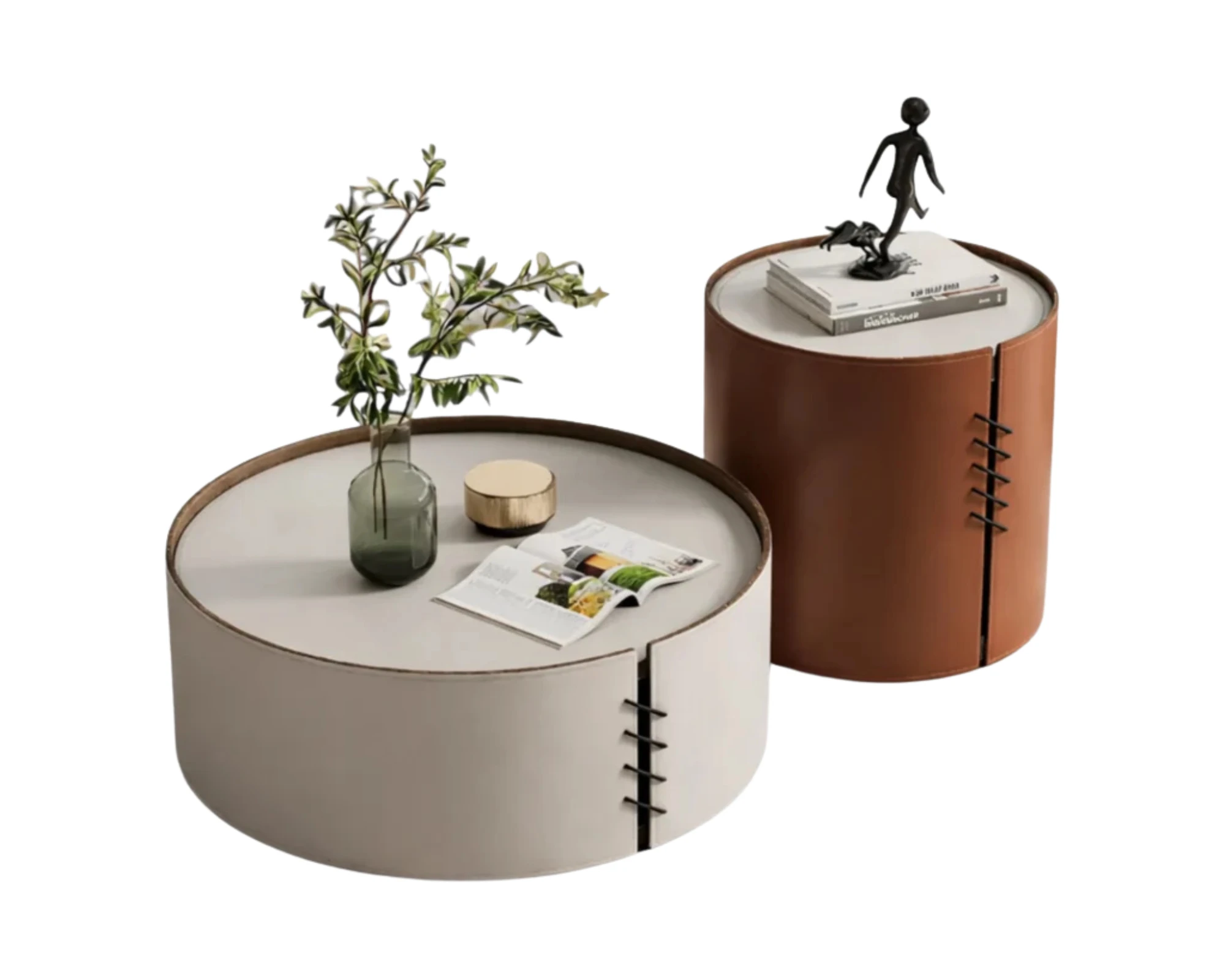זוג שולחנות סלון עגולים יוקרתיים המשלבים עיצוב מודרני עם נוכחות אומנותית מרשימה, ומעניקים לסלון מראה אלגנטי, מוקפד ועשיר בפרטים.
