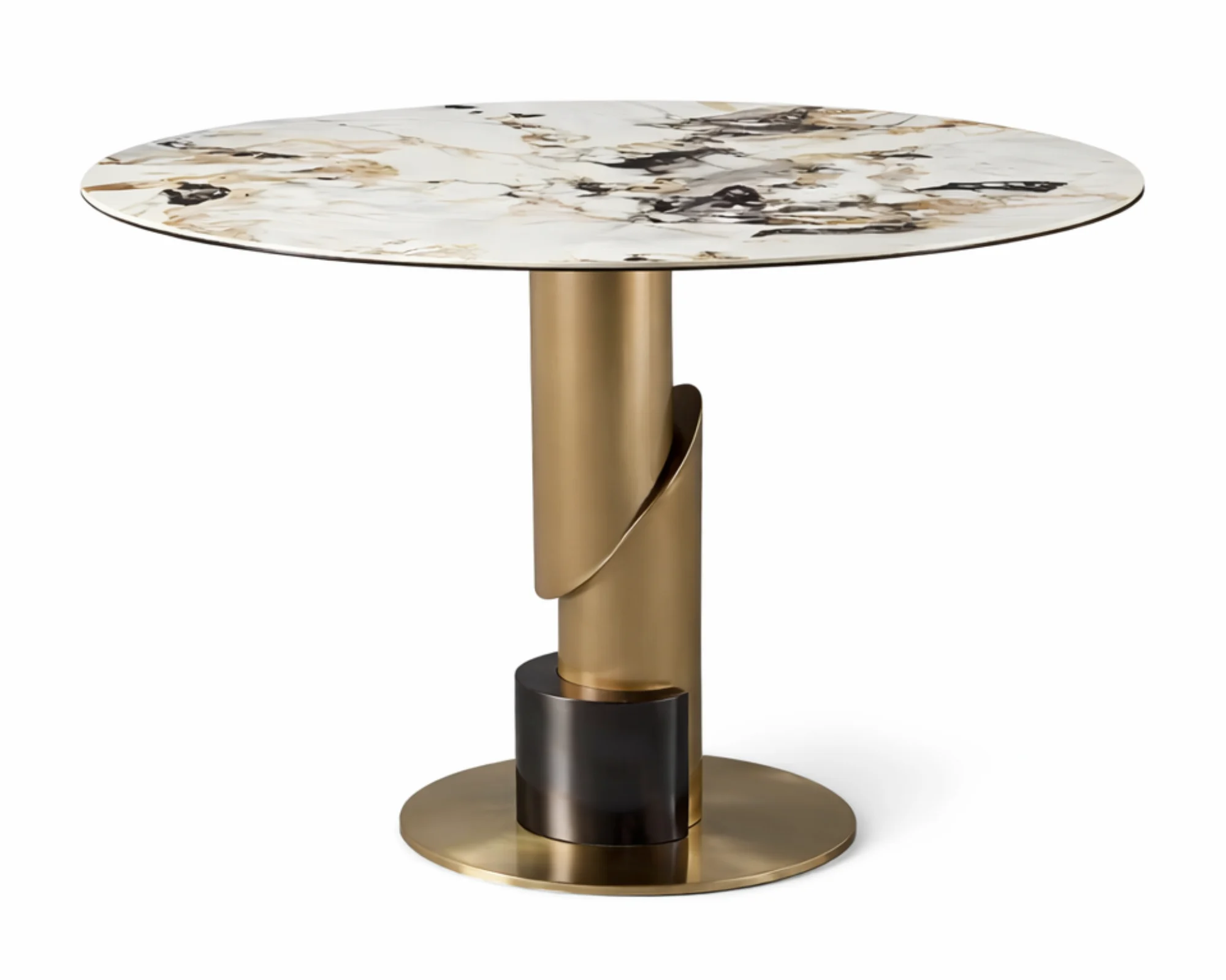 הבסיס הייחודי מעניק תחושת יציבות לצד קו עיצוב נקי ומדויק, ומשלים את המראה האלגנטי של השולחן. המשטח העליון מוסיף טאץ’ מרשים ומעודן, ומדגיש את איכות הגימור והחשיבה העיצובית שמאחורי הפריט.