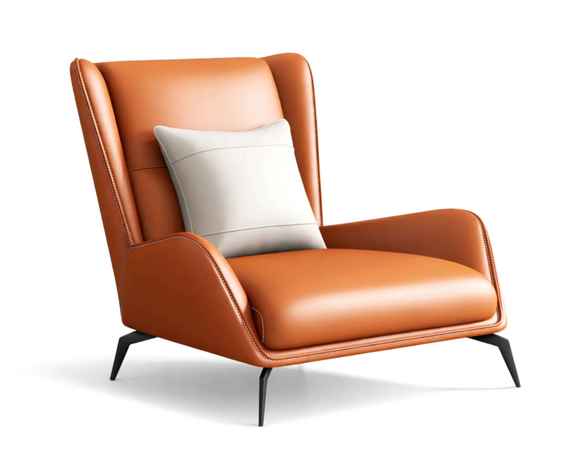 כורסא מעוצבת בסגנון מודרני יוקרתי, המשלבת קווים נקיים עם נוכחות אלגנטית ומרשימה. העיצוב המאורך של משענת הגב והזרועות המעוגלות בעדינות יוצרים מראה מאוזן והרמוני, ההופך את הכורסא לפריט מרכזי בכל סלון מעוצב או חלל אירוח מוקפד.