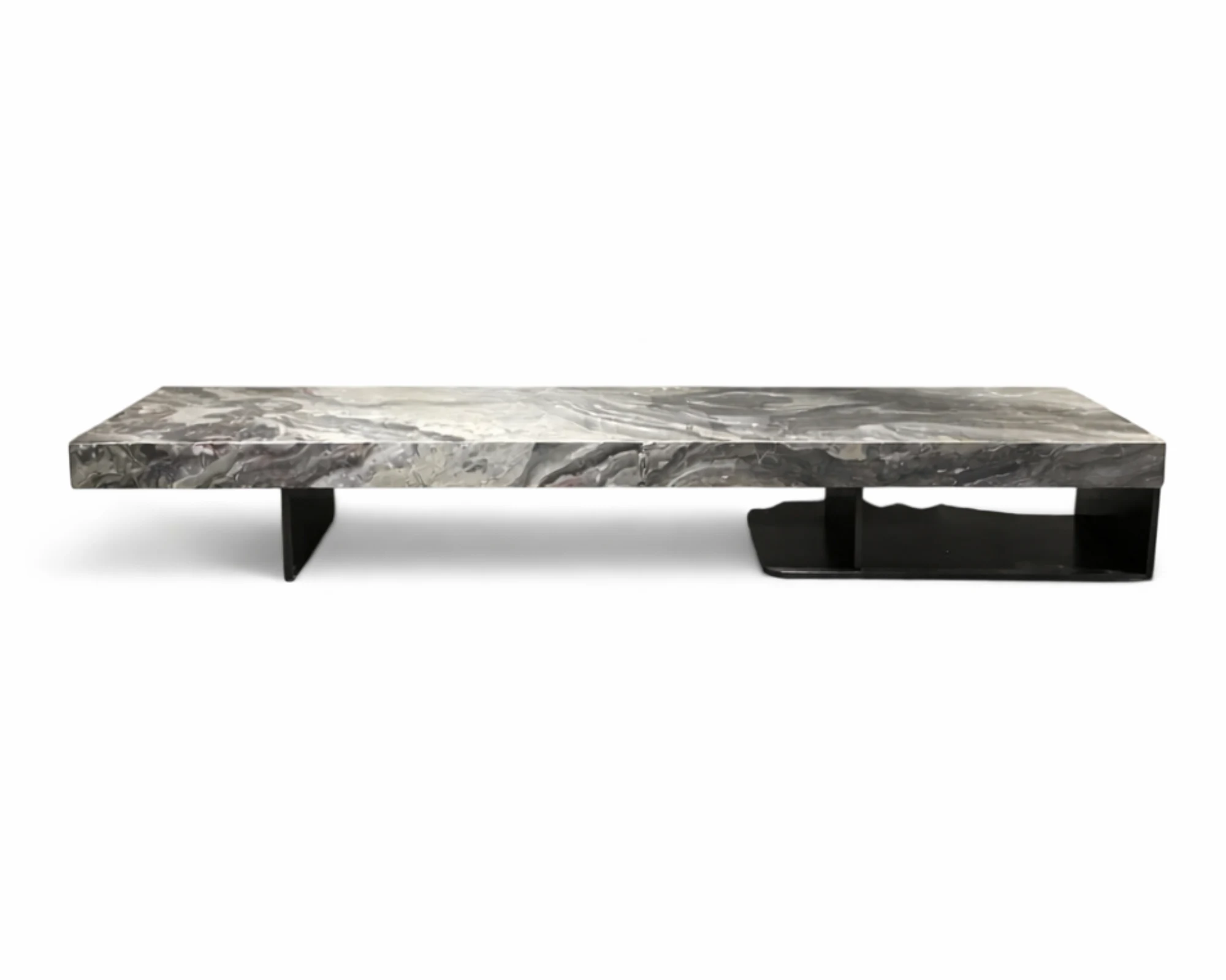 משטח שיש הפורצלן היוקרתי יוצר מראה עשיר ומוקפד, המשדר איכות ועמידות לצד אסתטיקה קלאסית נקייה. בסיס הנירוסטה משלים את העיצוב בנוכחות יציבה ומדויקת, ומעניק למזנון מראה מאוזן ואלגנטי.