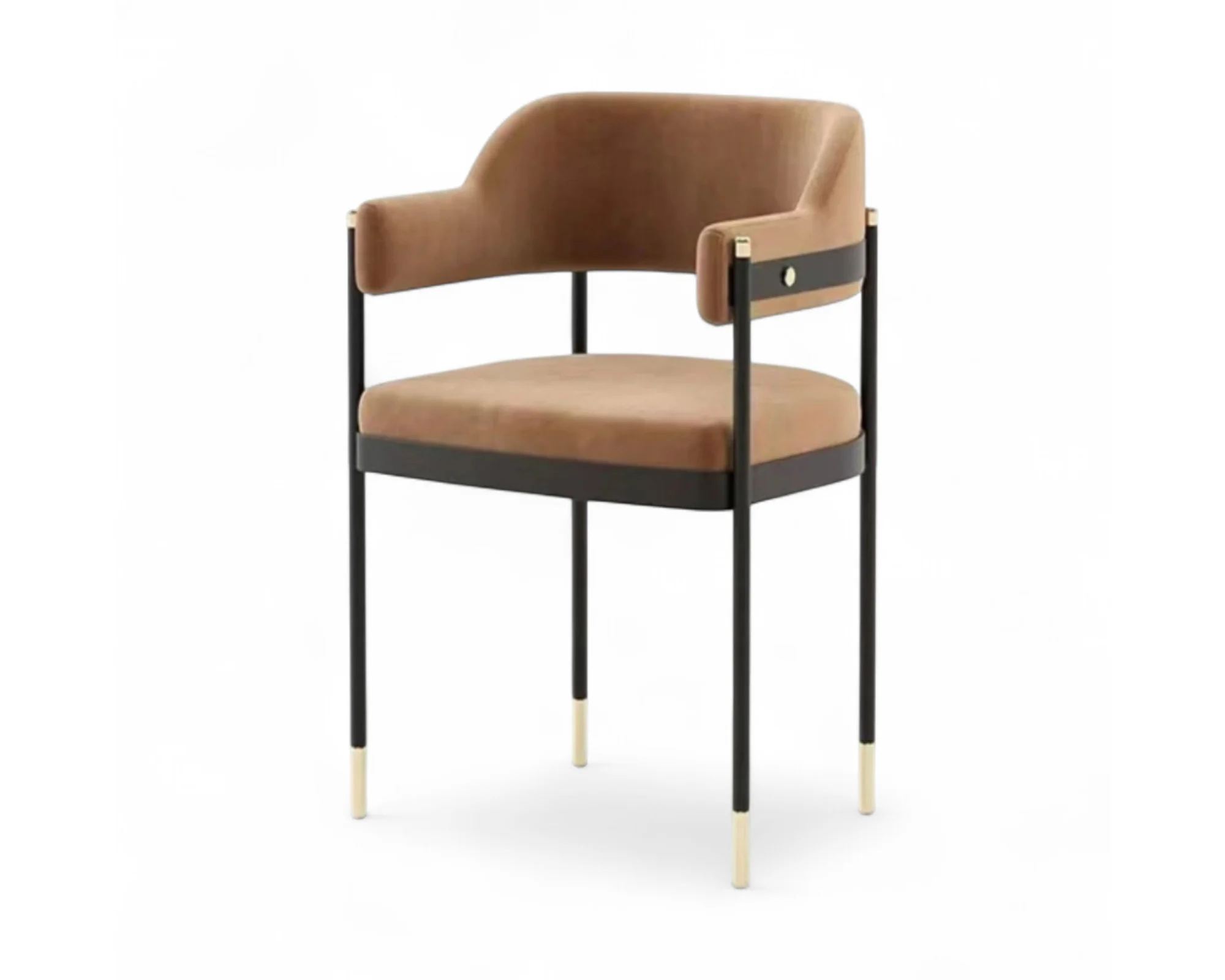 המושב עשוי מבד איכותי, ומאפשר לכם לשבת בנוחות במשך שעות ארוכות. הרגליים עשויות מברזל צבע שחור עם חלקים מנירוסטה צבע זהב, מה שמעניק לכיסא מראה יוקרתי ומלא סטייל.