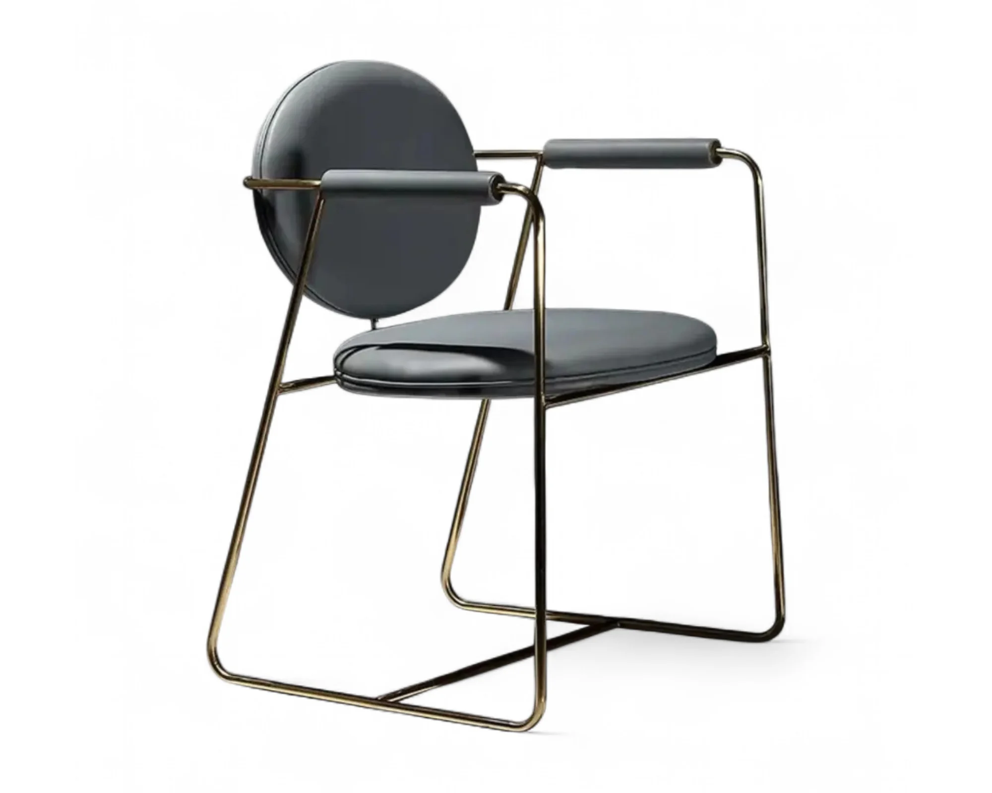 המושב עשוי מעור או בד איכותי, המעניק לו מראה יוקרתי ומזמין. המסגרת הפנימית עשויה מפלטה מכופפת עם ספוג בצפיפות גבוהה, מה שמעניק לכיסא מראה יציב וחזק. הרגליים עשויות מטיטניום מנירוסטה בצבע זהב, מה שמעניק לכיסא מראה יוקרתי ומסוגנן.