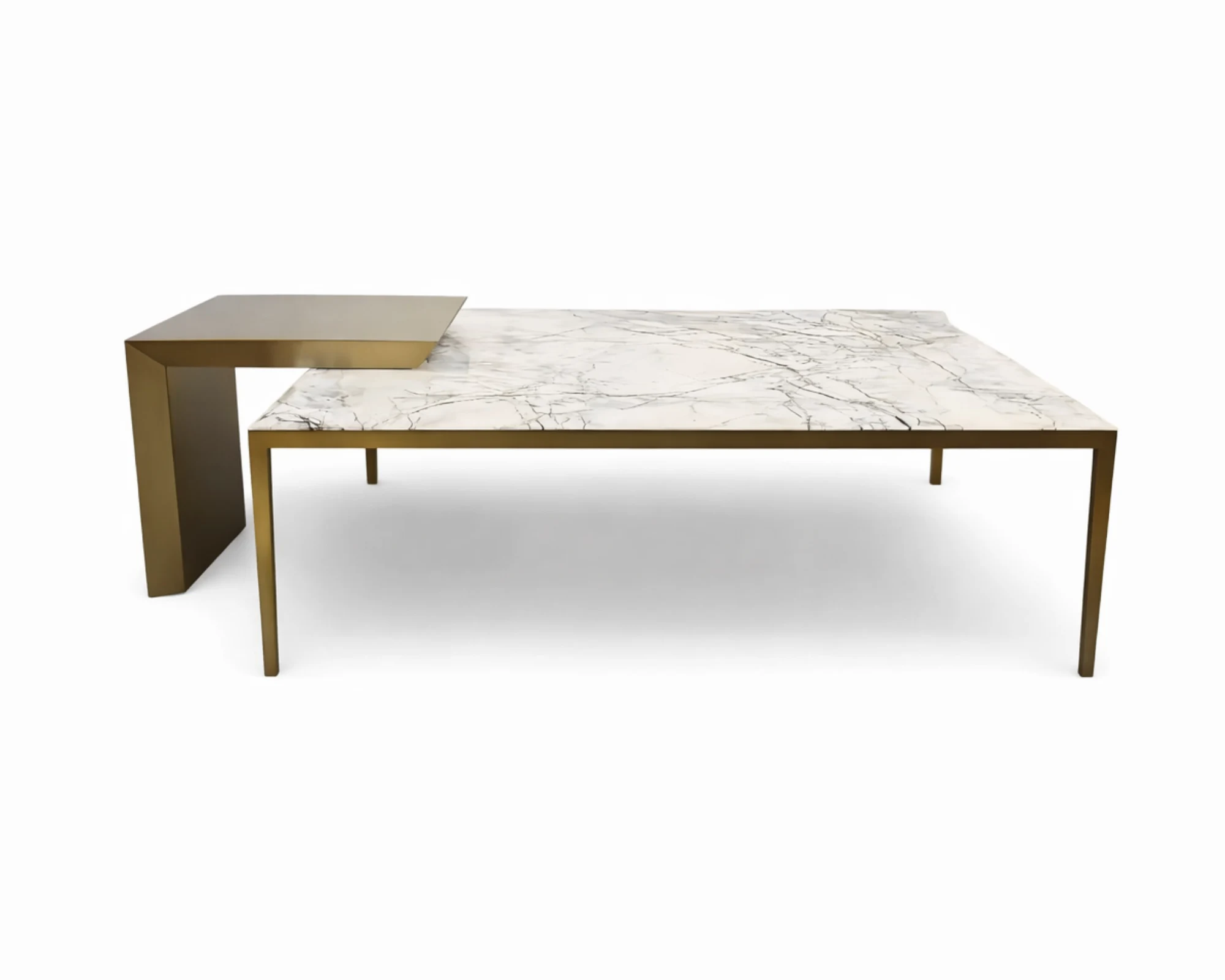 המשטח הרחב מעניק לשולחן נוכחות ייחודית ומדגיש את האלמנטים היוקרתיים של החלל, תוך יצירת איזון מושלם בין פונקציונליות לאסתטיקה. לצידו, שולחן הצד המשלים מוסיף רב־שימושיות וגמישות עיצובית, ומאפשר התאמה אישית לצרכים המשתנים של הסלון.